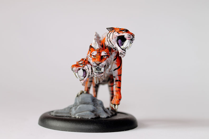 Begleitet werden die beiden von einem Jackalope, ein kleines, Hasenähnliches Tier mit einer Vorliebe für frisches Fleisch, einer riesigen Giftschlange, einem wilden Säbelzahn-Cerberus (gerade WiP) und dem Gorilla Cojo (grundiert).