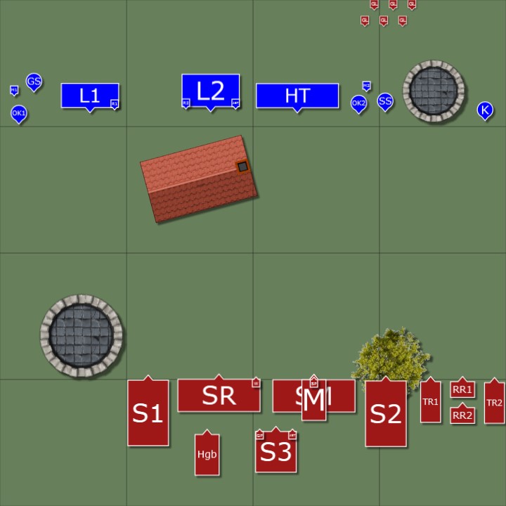 Mea Culpa. Ich habe im Schlachtbericht vergessen zu erwähnen, dass das längliche Gebäude kein Gebäude, sondern ein Hügel war. Ich habe es gestern leider nicht zuwege gebracht die Templates für zusätzliches Gelände zu installieren und musste mir daher mit dem Haus behelfen.