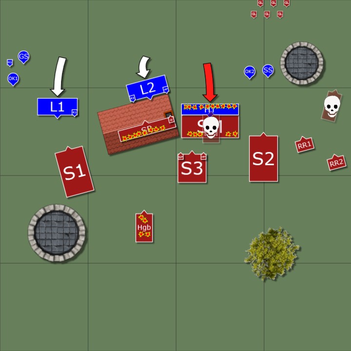 Die inzwischen schon stark dezimierten Sturmratten wollen es nicht mit den Langbärten im Zentrum zu tun bekommen und schaffen es mit einer Neuformierung an diesen vorbeizukommen.