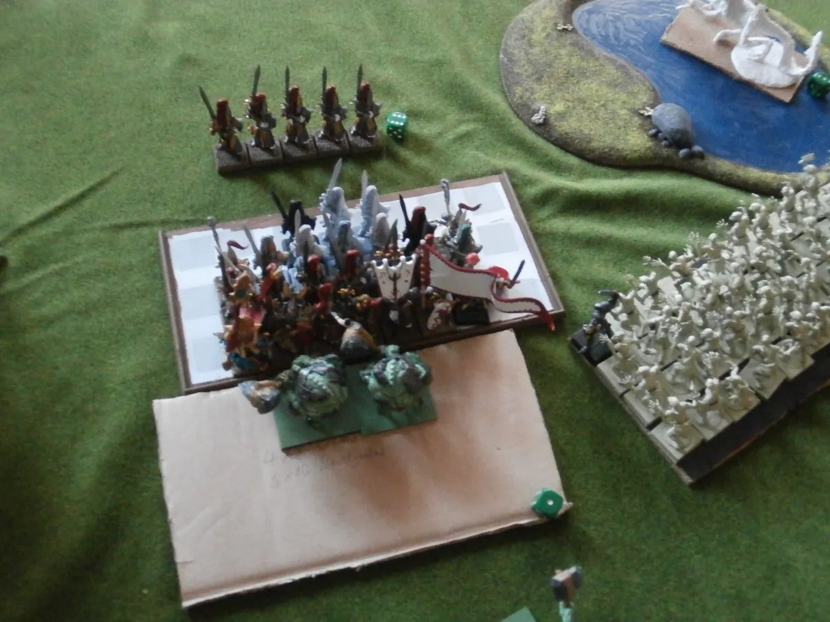 Für meine Bretonen war es die Generalprobe für das kommende Combat-8 Turnier, JaBa stellte freundlicherweise seine zweitliebste Armee zur Verfügung(Hochelfen).