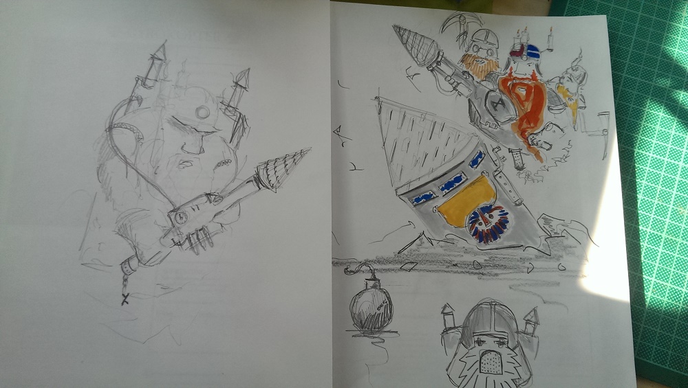 Ich würde mich so richtig über ein schönes Bergwerkerregiment freuen in dem ein dickes Bohrgerät steht. So eins, was sich aus der Erde buddelt und aus dem die Zwerge dann rauskrabbeln. Wer brauch schon Spitzhacken, wenn man schon Gyrokopter bauen kann!
