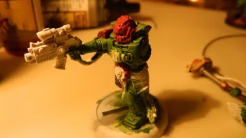 Ja also eigentlich benutzt man glaces um ganz viele transparente schichten farbe übereinander zu legen um so einen sehr flüßigen farbverlauf zu erzeugen. Der Trick dabei ist es die Farbe so zu kontrollieren, dass sie nicht wie ein wash in die vertiefungen fließt weil wir sie ja zum Highlighten haben wollen und nicht zum schattieren. Im grunde ist das ganz feines Schichten mit sehr dünner Farbe.