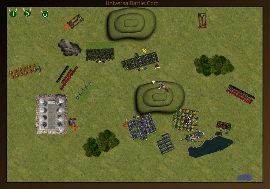 Nur vorsichtig rückten die beiden Hauptblöcke der Echsenmenschen vor. Lord Meztli wusste nicht, was diese fliegenden Dämonenmaschinen waren, doch diese mussten zunächst zerstört werden. Die Skinks empfingen seinen magischen Befehl und eilten vorwärts. Ihre kleinen, giftigen Pfeile durchdrangen jeden Spalt in der Maschinerie, doch zum Absturz vermochten sie sie nicht zu bringen. Allein Lord Meztli selbst schickte eines dieser Höllengeräte mit einem mächtigen Zauber zu Boden, bevor er von den magischen Energien dieses Ortes trotz aller Vorsicht von seinem Thron geschleudert wurde und seine Magie sich in einer Explosion entlud, die viele seiner Leibwachen das Leben kostete. Derweil erkämpften sich Tik’ichtacas Skinks nach dem ersten wütenden Angriff der Zwerge nun einen leichten Vorteil, doch längst wären sie anderswo gebraucht worden. Die wenigen Zwerge waren seinen Skinks kämpferisch überlegen und würden sie trotz der Unterzahl lange aufhalten.