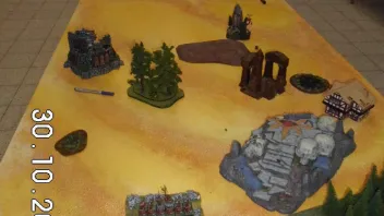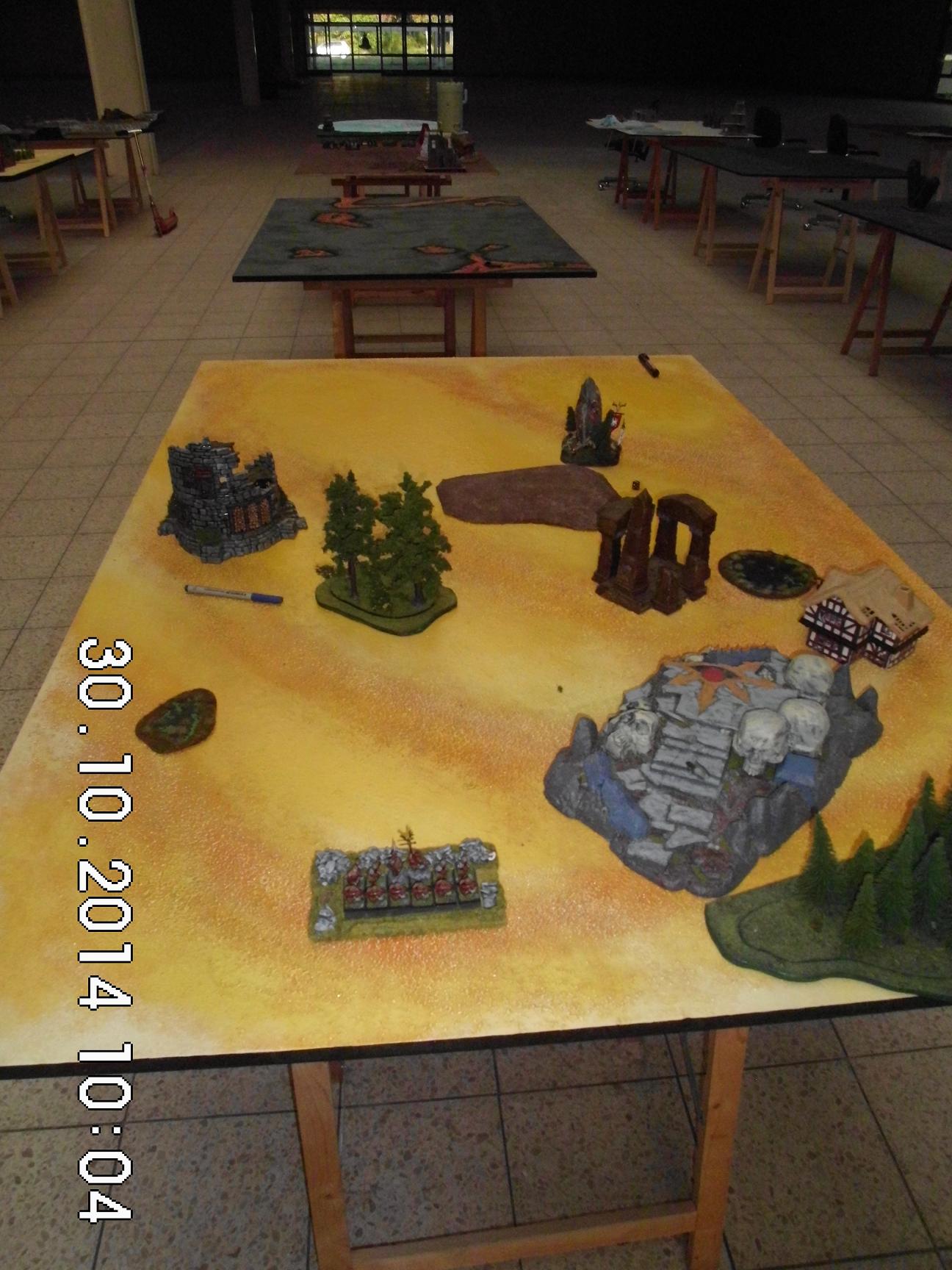 Wir zockten auf einer schönen Wüstenplatte (Bretonia im heißesten Sommer) und mein Gegner war sichtlich überrascht, daß ich eben zum Beispiel keine Höllengrubenbrut dabei hatte und er nun mit einem kleinen Teil seiner Ausrüstung ins Leere lief...Als dann beide Armeen auf der Platte standen, war das schon ein geiler Anblick!