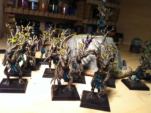 Wie versprochen sind heute die Dryaden fertig geworden. 12 Stück an der Zahl. 100% zufrieden bin ich noch nicht ganz. Aber fürs Spielfeld soll es reichen, und an Dryaden an sich soll es ja nicht mangeln. Auch wenn sie im vergleich zum letzten AB schwächer geworden sind werten sie jede Armee auf. Und wenn nur optisch