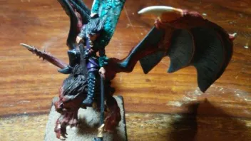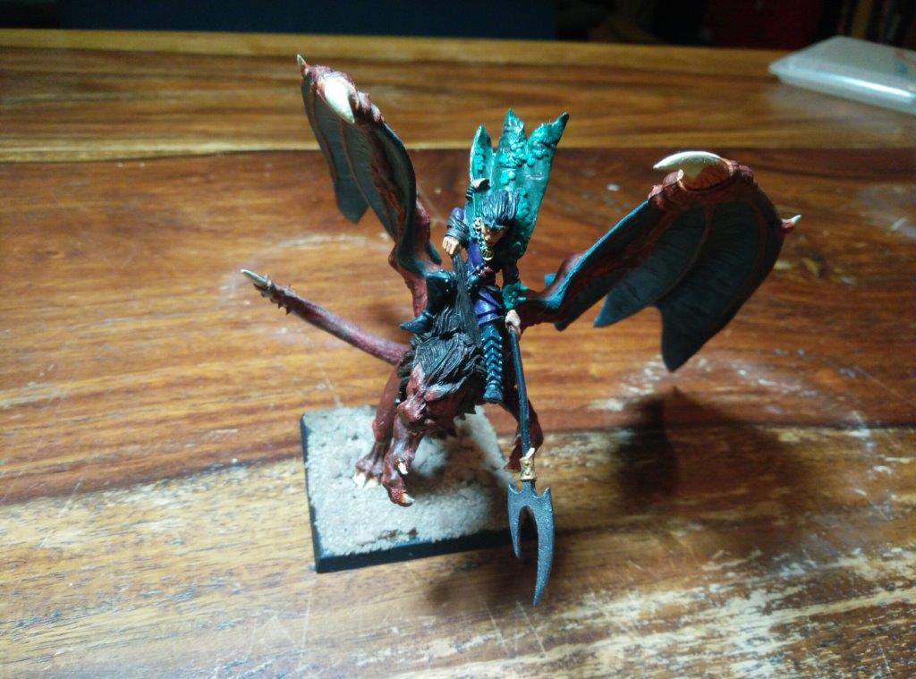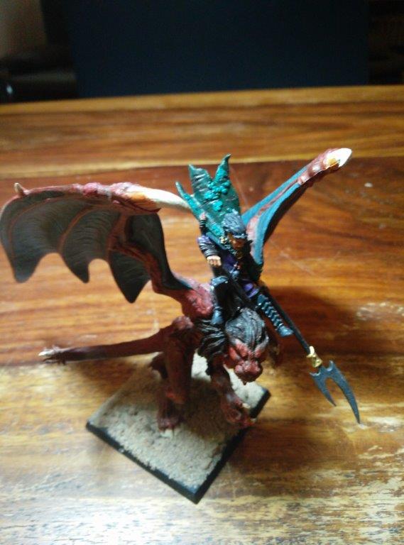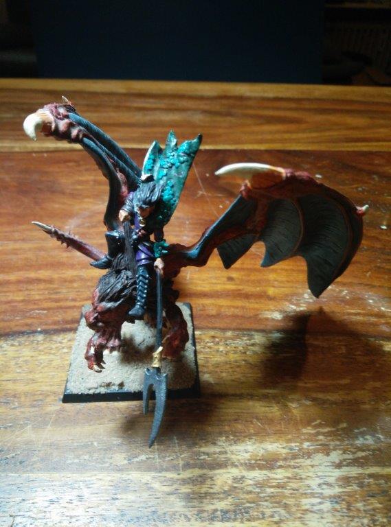 Ich habe ihn, weil ich das Modell sehr schön finde (das alte Dunkelelfen-Mantikor-Modell aus Metall). Rein spielerisch steht der Mantikor irgendwo zwischen Pegasus und Drache. Der Pegaus ist leichter zu schützen, weil hier ja Reiter und Ross ein Modell sind - Zwielichtmantel und 1+ Rüster drauf und los. Der Drache hingegen ist ein richtiges Biest und überlebt mit hoher Wahrscheinlichkeit auch die erste Kanonenkugel und trägt seinen Reiter in den Nahkampf.
