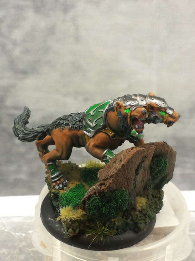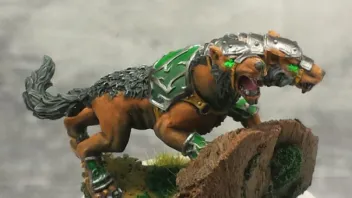 Mir gefällt die Farbwahl ganz ausgezeichnet, das wirkt alles sehr sehr stimmig und harmonisch. Besonders gelungen finde ich auch das hellbraune Fell der Hunde. Da zauberst du definitiv ne großartige Truppe die ordentlich was hermachen wird auf der Platte. Zwei kleine Kritikpunkte will ich aber noch äussern (Wohlgemerkt auf hohem Niveau, ich finde die Modelle wirklich klasse). Der OSL Effekt der Hundeaugen (tippe da mal auf dayglow Pigmente) lenkt den Fokus zwar stark auf das Gesicht, hätte meiner Meinung nach aber auch etwas subtiler ausfallen dürfen (wobei das auch an den Fotos liegen kann). Der zweite Kritikpunkt bezieht sich nicht auf die Figuren sondern auf die Bases. Krork ist natürlich überragend gut dazu geeignet um Volumen auf seinen Bases aufzubauen aber denkbar ungeeignet für die Struktur. Warum zur Hölle hast du dir nicht die Mühe gemacht die Oberfläche der Korkplatten zu versiegeln bzw. zu verkleiden (Milliput etc.) du fauler Sack. Jetzt sehen sie an manchen Stellen eben zu sehr nach Kork aus anstatt nach stimmiger Landschaft. Jetzt aber genug gemeckert, geiles Projekt, geile Umsetzung! Bin sehr gespannt wie es sich weiterentwickelt und werde es mit Spannung verfolgen.