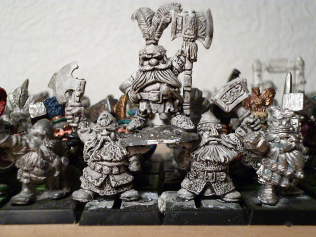 Die werden auch alle nochmal umgebased, da das Grasstreu einfach zu grün-grün ist - kommt ein matterer Ton drauf.Die eigentliche Schande ist, daß Norrlug Isegrimm höchstselbst auf Schildträgern schon gebaut ist und noch auf Farbe wartet