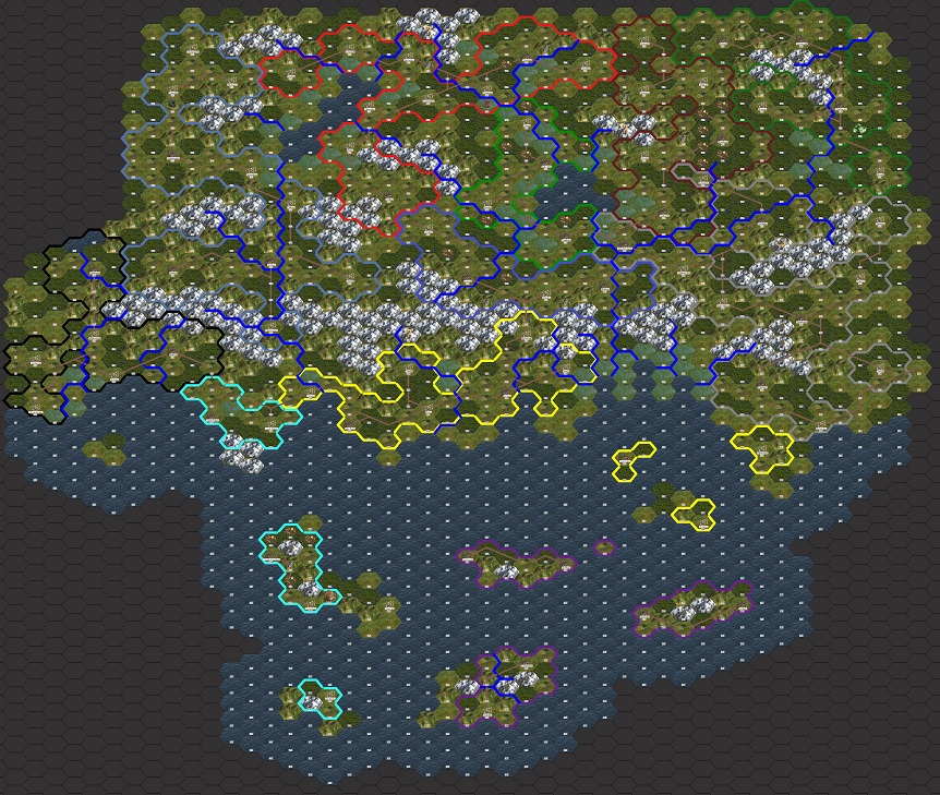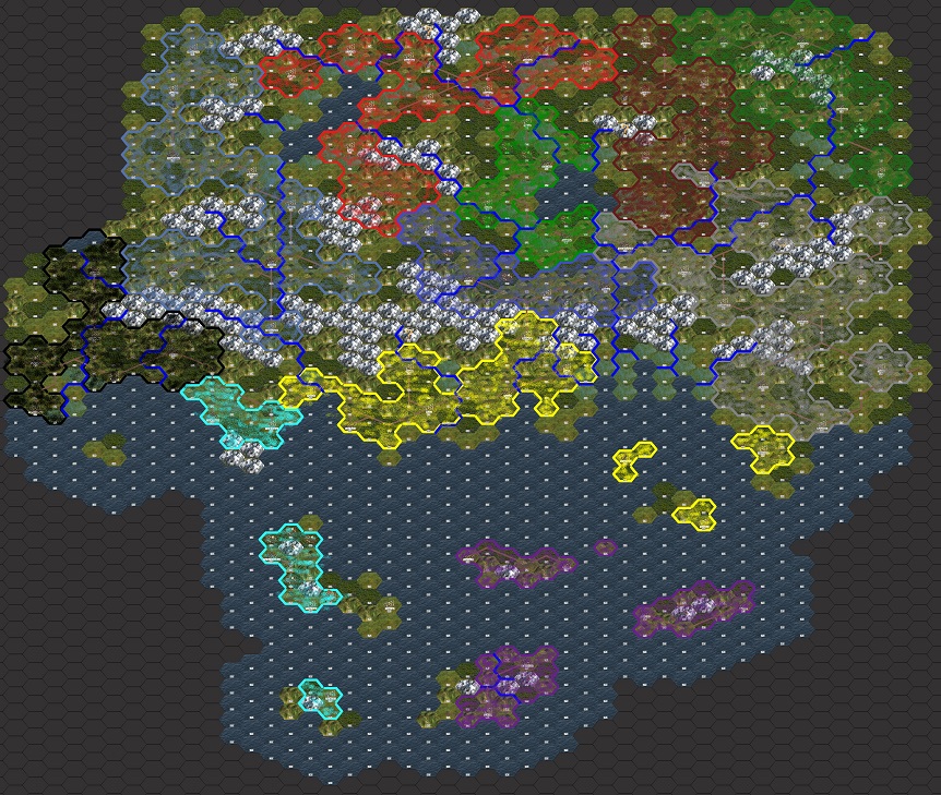 Meiner Einschätzung nach erreichen wir in drei bis vier runden das Ende der anfangs Phase. Dann dürften alle reiche stehen und genug ausgebaut sein. Und auch genug Armeen stehen. Dann geht es richtig los mit der Action ![]()