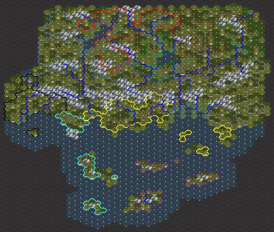 Die Gebiete von Gersi werden dann zum Beginn der nächsten Runde freigegeben. Die Startsiedlung wird auf ein Dorf gesenkt und an Benni übertragen, alle weiteren Siedlungen und Aufwertungen werden gelöscht.@Benni: