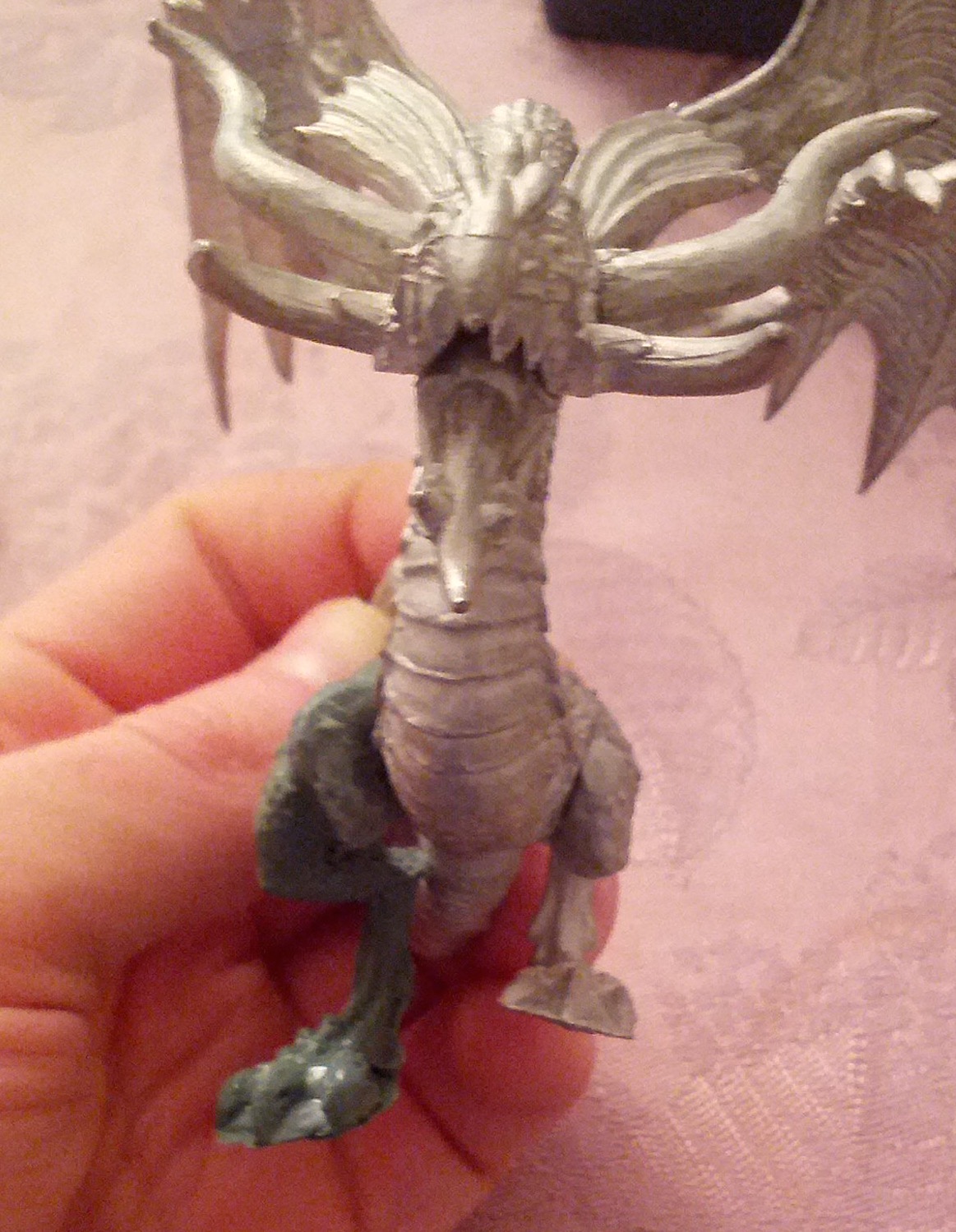 Ich habe günstig einen Hochelfen Fürst auf Drachen bekommen - den alten aus Zinn. Leider ist es so, dass der rechte Drachenfuß nicht mehr dabei ist. Jetzt könnte ich den zwar als Invaliden spielen, aber eigentlich hätte ich gerne das ganze Modell