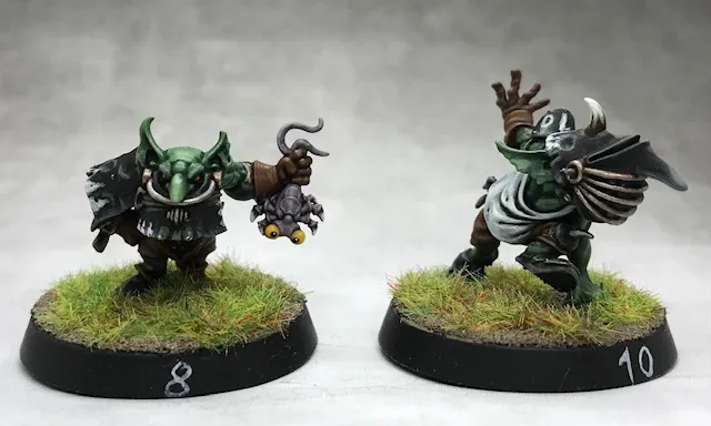 Goblins können richtig fies sein. In dem reinen Goblin Team spielen sehr viele versteckte Waffen mit. Die Kettensäge kann auch mal die härtesten Rüstungen zerstören. Auch der Fanatic kann sehr nerven... Im Schwarzorkteam sind die Goblins für die Touchdowns da. Sie nehmen den Ball auf 3+ auf und dann gehts los. Allerdings könne sie nicht so gut einstecken, daher immer schön wegrennen.