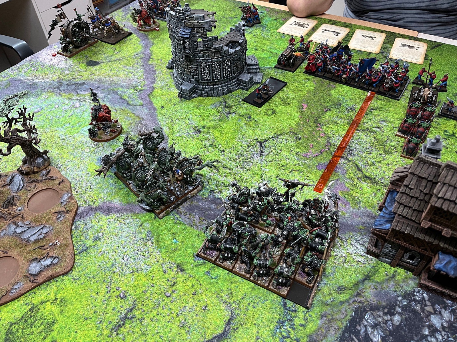 Schön mal wieder ein klassisches Spiel. Meine Orks und Goblins waren am Start und ich freute mich schon auf viel Stänkereien und lange Angriffsreichweiten und Magieextreme.