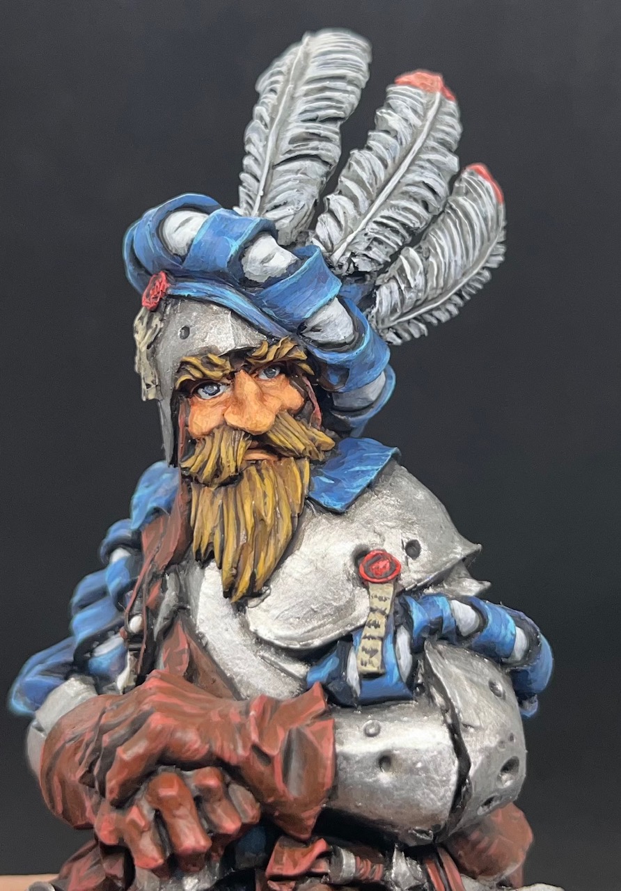 meine anderen Imperiumstruppen sind in blau/weiß gehalten mit roten Akzenten. Weiß nur noch nicht, ob diesem Bestienmagier die Uniformierung interessiert... ich könnte den Lendenschurz in Rot bemalen, damit die Akzentfarbe die Figur mit der Armee verbindet