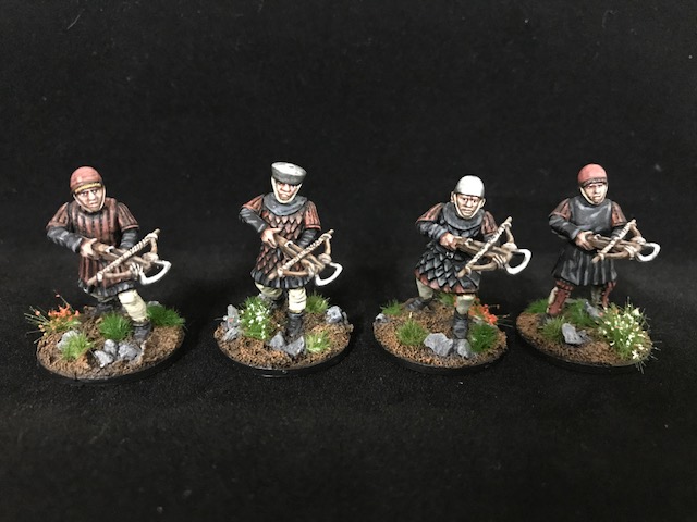Derweil habe ich die Armbrustschützen für die Ordensritter fertig. Also vier weitere, so dass ich nun einen 12 Kriegertrupp machen kann. Dafür muss ein anderer Kriegertrupp auf vier reduziert werden, aber das will ich mal ausprobieren. Vielleicht kann der Beschuss ja was reißen.