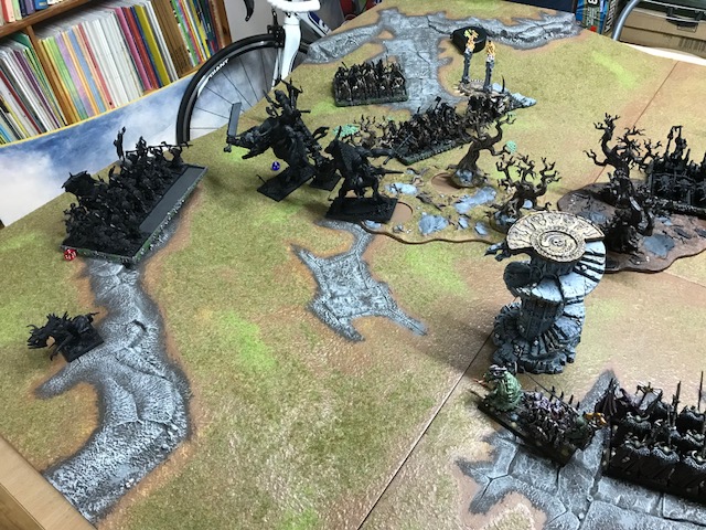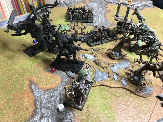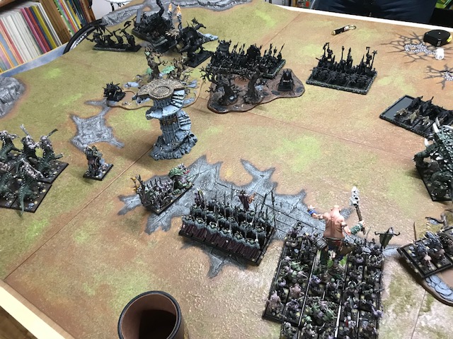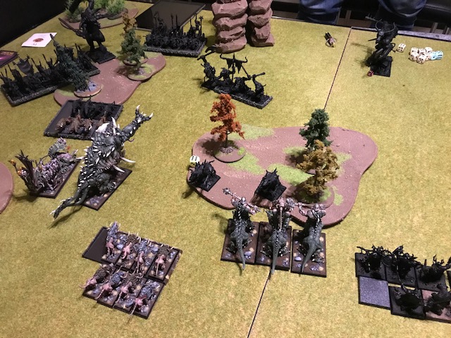 Die Schlacht war im Grunde gelaufen. Es lebten noch die Bestigors und ein paar Gors mit Wurfwaffen auf Seiten der Tiermenschen und bei mir war im Grunde noch fast alles am Leben (außer den Fornsworn und der Hunde).