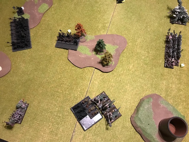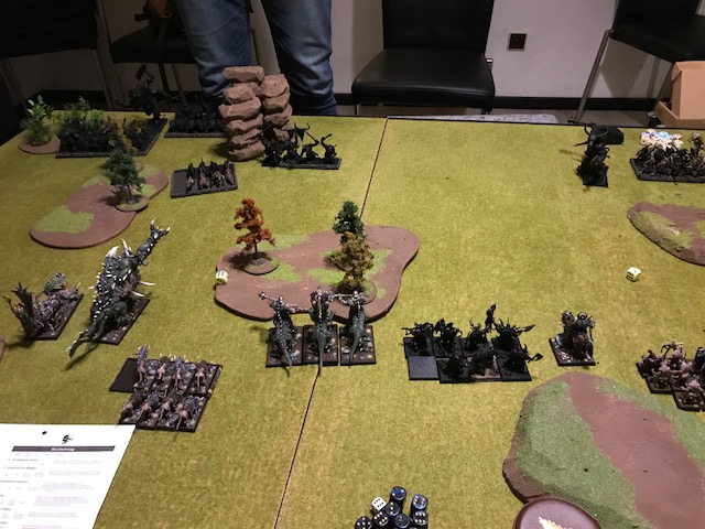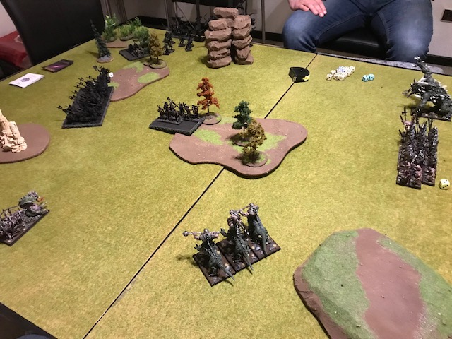 Auch diesmal wurde eine Mission mit zwei Markern gespielt und auch diesmal stellte sich der Gegner fast komplett auf einer Seite auf. Meine rechte Seite hatte nur zwei generische Einheiten vor sich... kam mir am Anfang so vor, als würde sich das Spiel wie gegen die Hochelfen wiederholen...