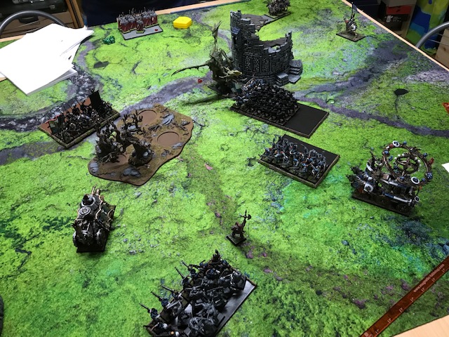 Im Hobbykeller trafen also die Chaoskrieger von arnadil auf meine Imperiumsarmee! Oder mit den 9th Age Namen: Warriors of the Dark Gods vs. Empire of Sonnstahl!