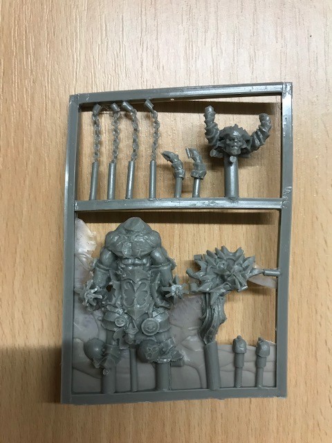 Sind vier Sachen. Ein orkiges Geländestück, ein Held zu Fuß, ein Nurgle Riese und ein nurgliges Großmodell, das ich vielleicht als Dämonenprinz spielen könnte.