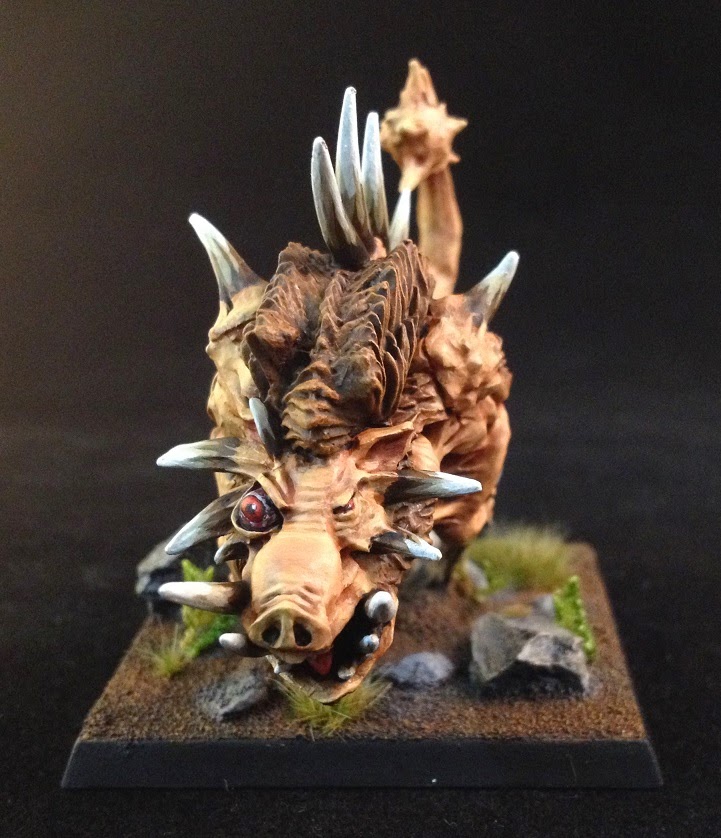 Da habe ich tatsächlich auch drüber nachgedacht. Denke, wenn ich mir einen Zweiten holen sollte, mach ich den Schwanz dann knochiger. Es gibt ja auch nur diese eine Gnargorvariante. Wenn man dann zwei hat, ist es schon sinnvoll mit der Bemalung zu spielen.