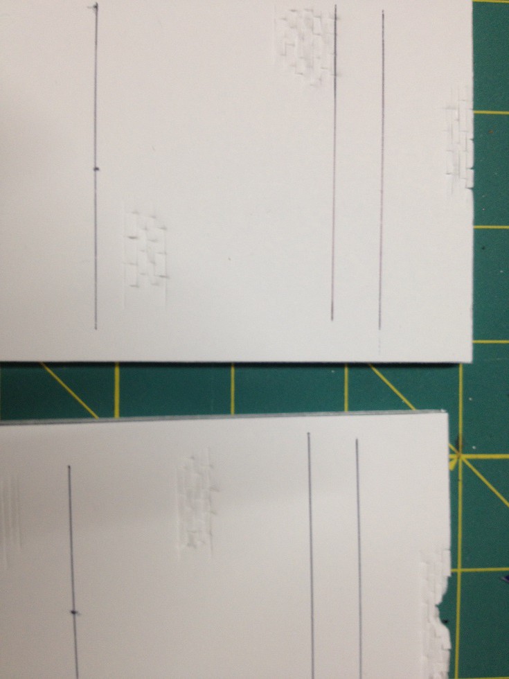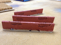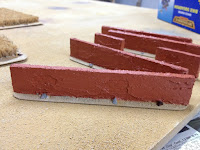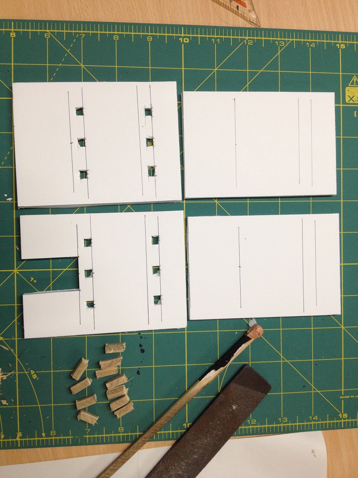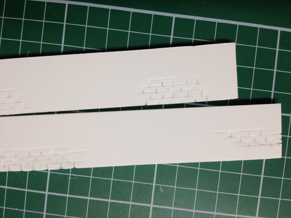 Der Beginn ist eine Hartschaumplatte aus der die Mauern herausgeschnitten wurden. Mit einem Kutter habe ich dann eine Mauerstruktur auf einigen Stellen eingeritzt.