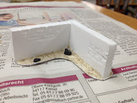 Weil alles am Ende auf einer Sandplatte steht, darf natürlich der Sand auf der Base nicht fehlen. Ein paar größere Steine dazwischen lockern alles etwas auf.