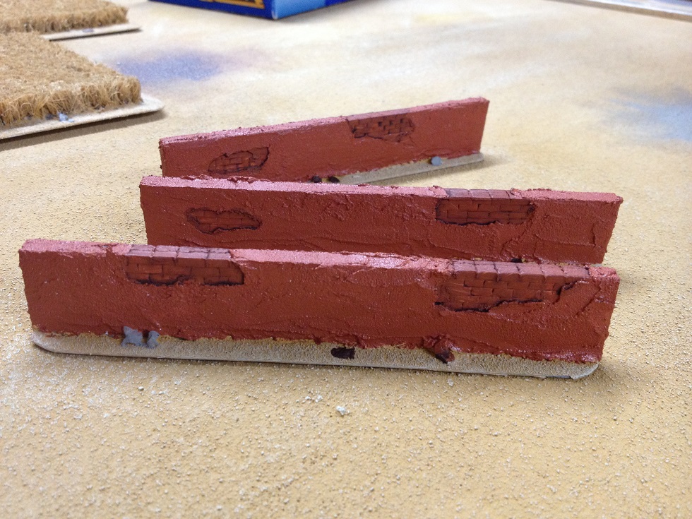 Die Segmente wurden auf Bases geklebt. Dabei sind die Bases so, dass man die Mauern direkt aneinander stellen kann. Natürlich haben wir auch an Eckelemente gedacht.
