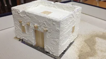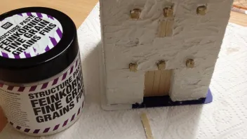Für den Putz des Hauses nehme ich feine Strukturpaste.