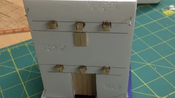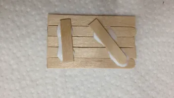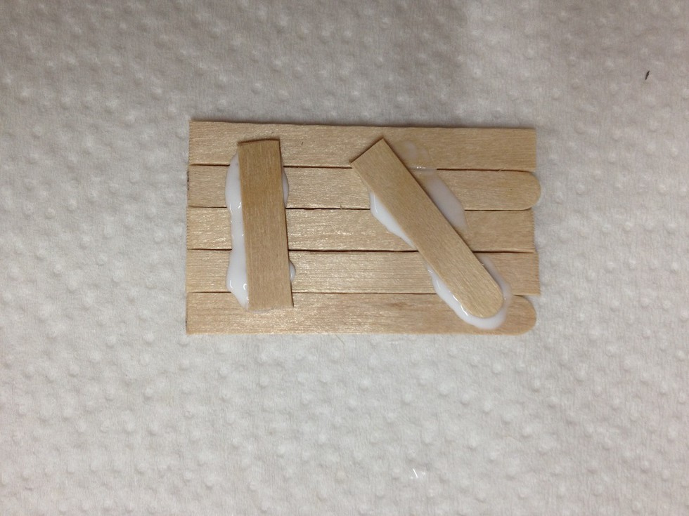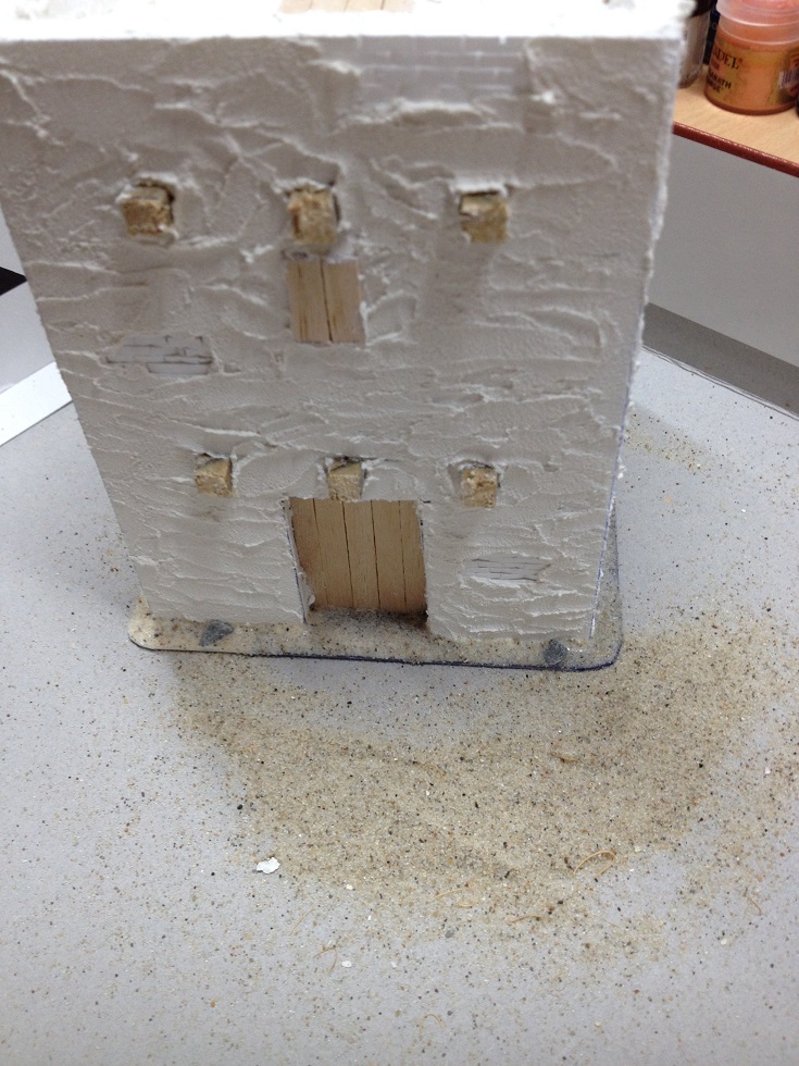 Die Türen und Fenster sind aus Holzstäbchen von einer Fast Food Kette. Für eine bessere Holzstruktur nach dem Trockenbürsten, habe ich alle Holzstreifen mi einem Cutter eingeschnitten.