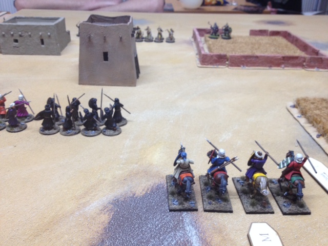 Die Felder haben wir regeltechnisch so gespielt, dass man darin Deckung hat (also bei Saga heißt dass, dass man schlechter getroffen wird). Allerdings bewegt man sich langsamer durchs Feld. Ich habe sie daher versucht zu umgehen. Mein Gegner hatte wohl den gleichen Gedanken. ;)