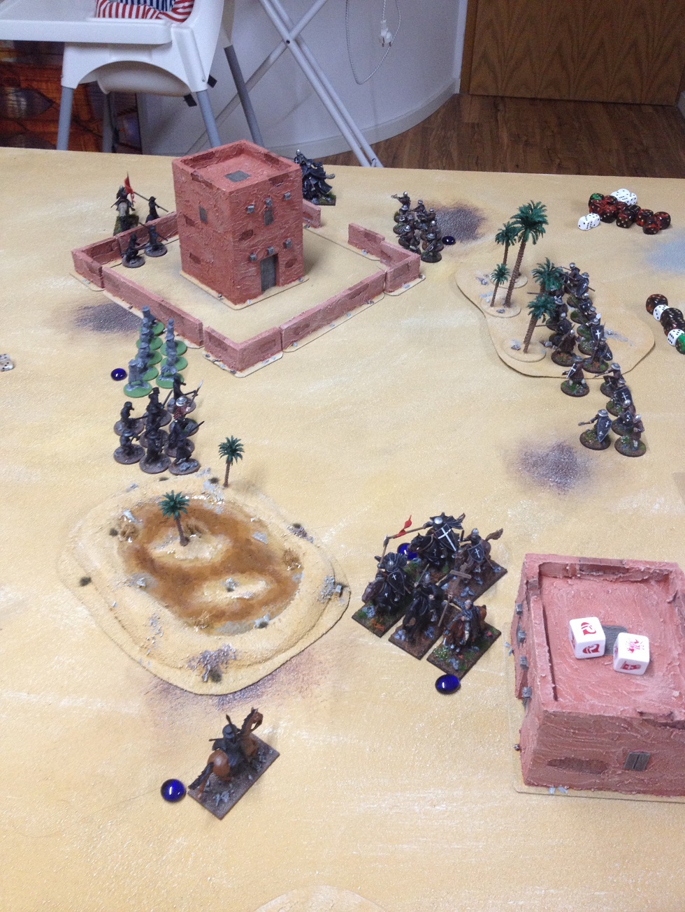 Die Kreuzfahrer meines Bruder bestanden aus vier Veteranentrupp (zwei berittenen und zwei zu Fuß) und zweimal Krieger (ebenfalls mit einem Trupp Armbrüsten).