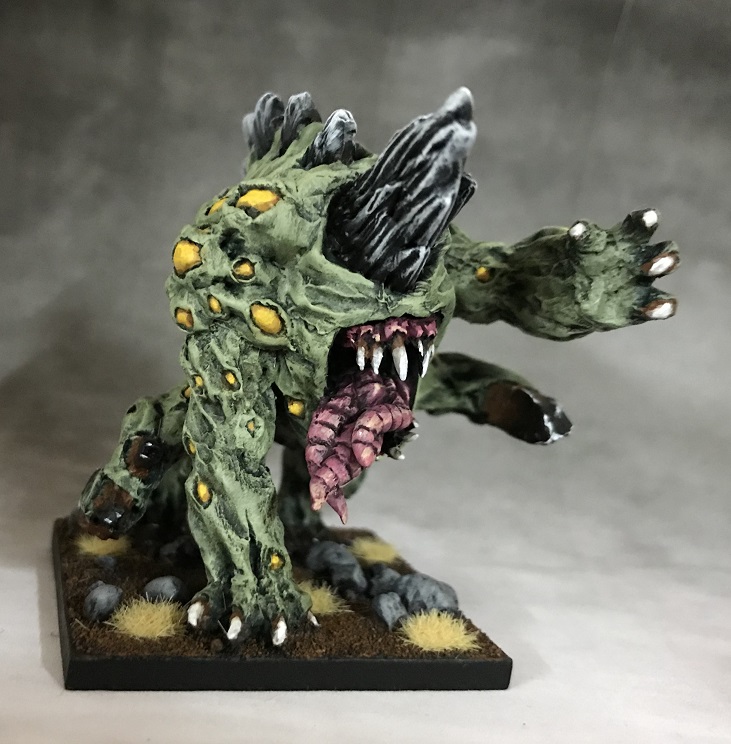 )Mittlerweile hab ich mit Farbe auf die neu grundierten Modelle angefangen! Und eine Klauenbestie hab ich schon fertig stellen können:
