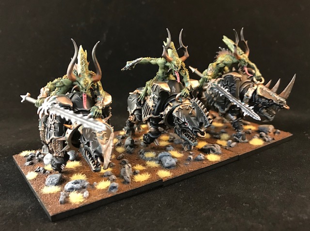 Klar darfst du! Kritik wurde aufgenommen und verstanden. War tatsächlich auch vorher am überlegen, aber hab mich aufgrund der Armeezusammengehörigkeit für die gleiche Farbe entschieden. Ich denke, als Einheit bin ich zu frieden mit denen. Vor allem, wenn ich sie als Einheit vom Spielfeldrand betrachte, werden die Zungen auch so ein Hingucker sein. Wenn sie als Einzelmodelle gedacht gewesen wären, hätte ich sie vielleicht jetzt sogar noch in den Angriff genommen. Auf jeden Fall bleibt die Anregung positiv im Hinterkopf.