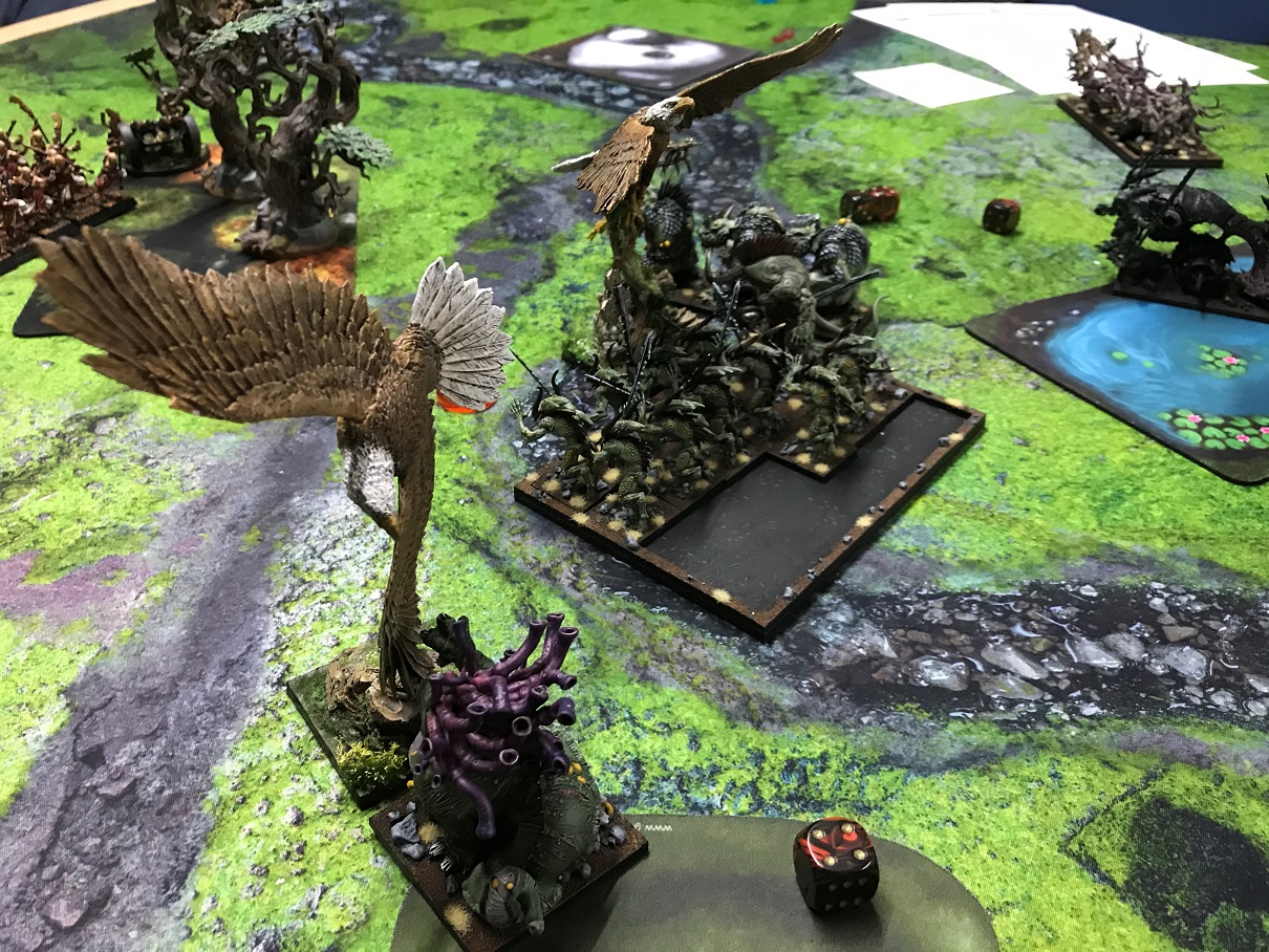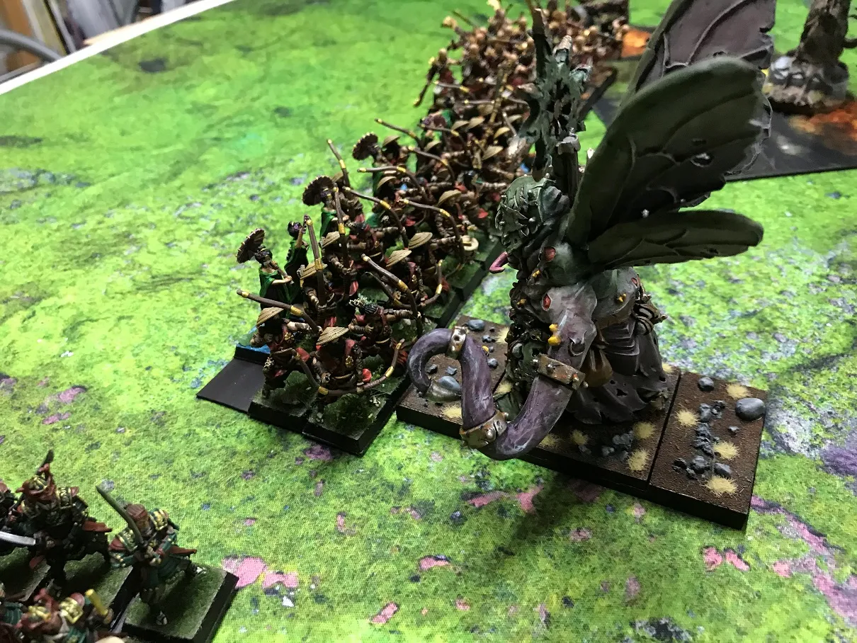 Einzig das Omen bleibt stehen und schlägt in meiner Runde noch den General der Hochelfen um, bevor es dann durch das Kampfergebnis verliert und sich auflöst.