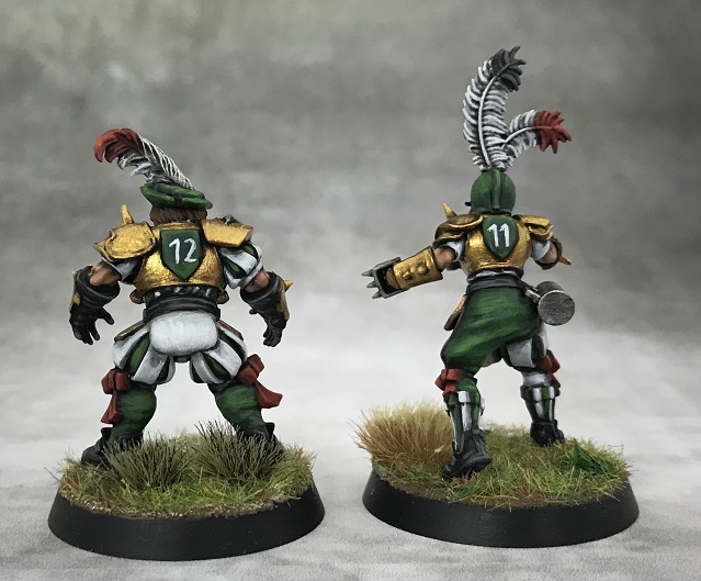 Jetzt war erstmal das nächste Blood Bowl Spiel. Erste Spiel in der Liga. Zufällig waren die Echsen wieder Gegner, die ich schon im Pokal rausgeschmissen hatte. Als Dank für die Touchdowns bemalte ich gleich mal die 8 und die 10.
