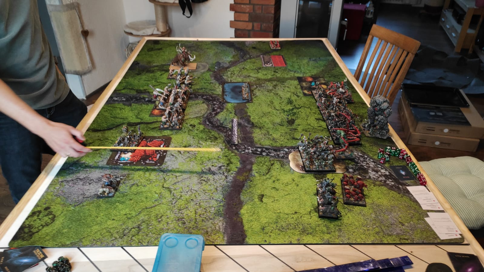 Ganz schön heftig, was da in den Nahkämpfen los war! Denke am meisten Glück hatte ich, als der Rob of Battle durchkam, denn sonst treffen meine Oger nicht so gut. Auch das Auroch muss die Orks nicht in einer Runde brechen. Aus Orksicht würde ich die Aufstellung besser machen, denn die Trolle waren völlig aus dem Spiel genommen.