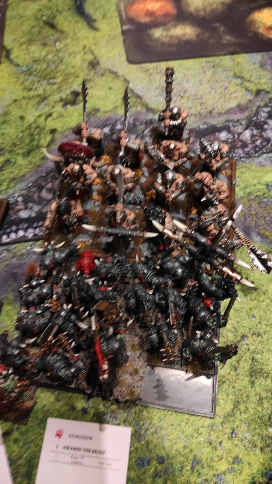 ) die Gnoblarfallensteller besiegen. Ein bisschen wurde noch neu positioniert, damit ich leider nur noch die Front der Orks sehen kann.
