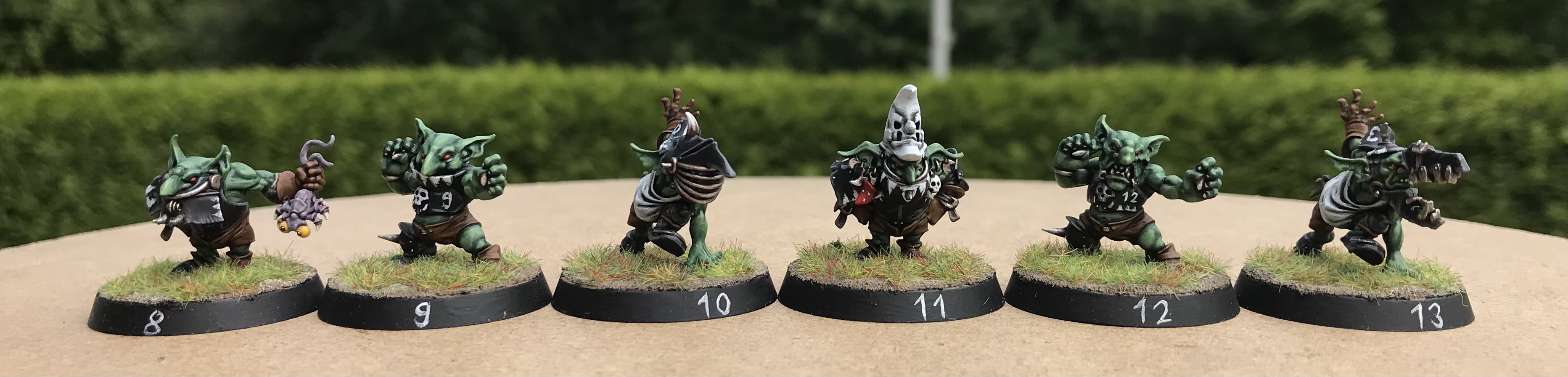 Goblins können richtig fies sein. In dem reinen Goblin Team spielen sehr viele versteckte Waffen mit. Die Kettensäge kann auch mal die härtesten Rüstungen zerstören. Auch der Fanatic kann sehr nerven... Im Schwarzorkteam sind die Goblins für die Touchdowns da. Sie nehmen den Ball auf 3+ auf und dann gehts los. Allerdings könne sie nicht so gut einstecken, daher immer schön wegrennen.