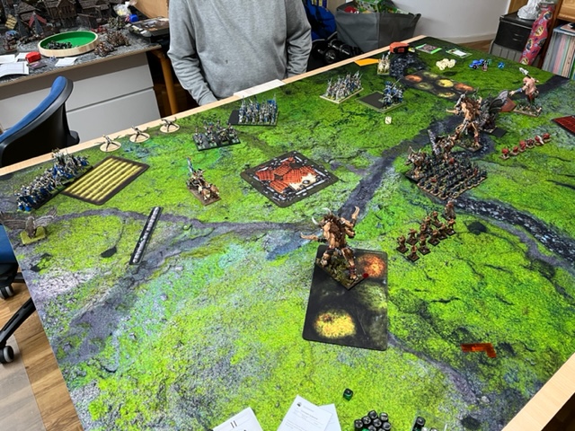 Am Ende war es doch deutlicher, als es hätte ausfallen können. Mehrfach war das Glück eher auf meiner Seite. Dazu muss man sagen, dass es erst das dritte 9th Age Spiel von meinem Gegner war und wir viel über das Spiel an sich geredet haben. Auch im Nachhinein noch, was man alles besser machen kann. Die Assasine wurden z.B. die ganze Zeit vergessen. Ich dachte immer, dass sie in dem Trupp sind, den ich mit den drei Ogern ausgebremst habe, aber die hätte man wohl auch in die anderen Truppen bringen können.