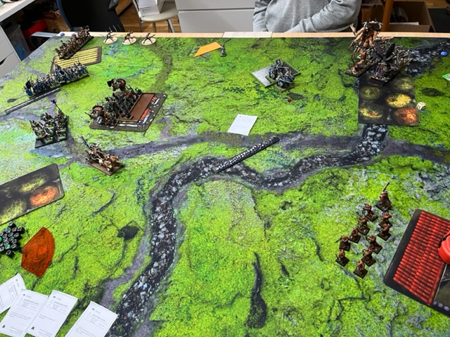 Es ging mit der diagonalen Aufstellung darum, mehr Scoring Einheiten in die gegnerische Aufstellungszone zu bringen. Da die Skaven rein auf Nahkampf aus waren, würde es also ein Gemosche in der Mitte des Feldes geben und mal schauen, wer als Sieger hervorgeht.