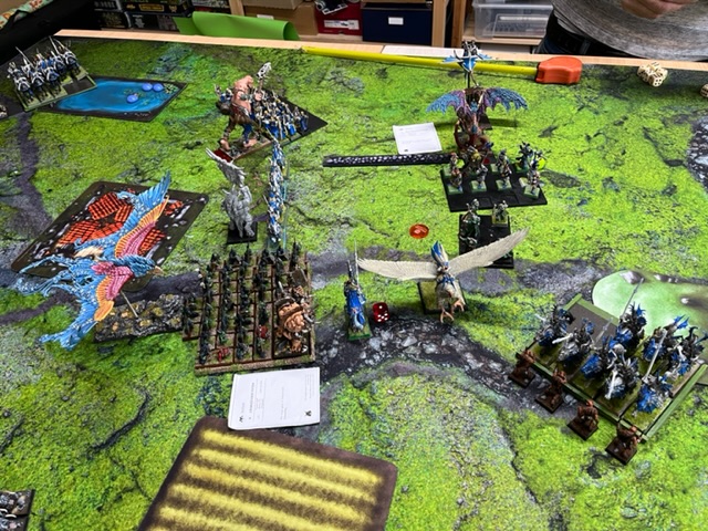 Die Hochelfen waren dran und es war einiges möglich. Durch die Flucht der Silberhelme war die linke Flanke nun etwas mehr zu meinen Gunsten, aber rechts sah es nichts so gut aus...