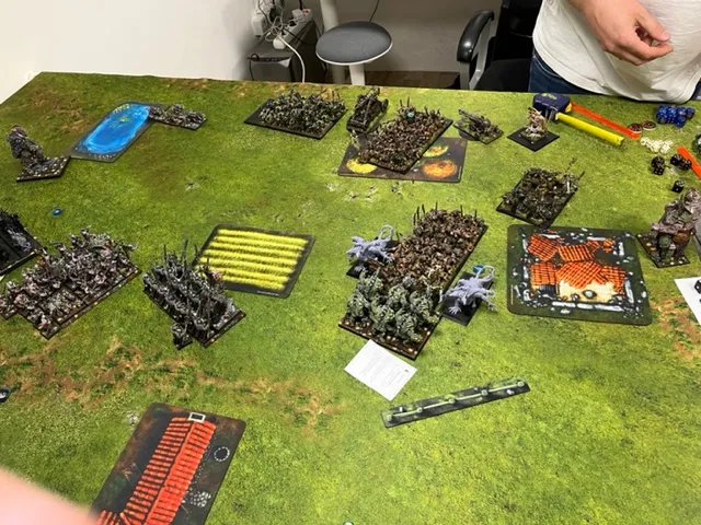 Hätte denn der Skavenspieler als er nach vorne auf den Berg marschiert ist, die Position vom Doom Blade Lord ändern können? Dann hätte er den Helden eh dorthin stellen können, wo er möchte als auch vor meinen AST.