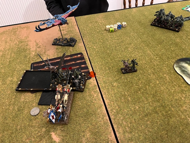 Die linke Seite mit Gortach und Jabberwocky lief eigentlich recht gut. Aber in der Mitte machte ich einen riesen Fehler. Ich zerstörte alle Umlenkreiter und wollte mit den Minos stehen bleiben. Aber wir waren nach den zwei Spielen wohl etwas durch und so würfelte ich wegen Raserei, ob ich überrennen muss... erst eine 11, dann wieder eine 11 und dann überrannte ich 11 Zoll nach vorne... So ein Dreck. Es wurde zwar noch etwas spannend, als die Necropolis Guard mir in die Flanke fiehl, aber als dann die Minos mit General auf der Flucht eingeholt wurden, war es schwer noch Punkte zu holen.