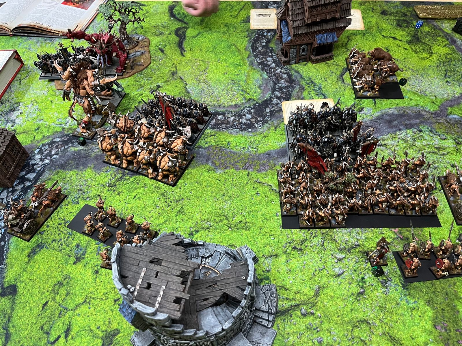 Aber die Razortusk liefern wieder, sie schlagen die Krieger in die Flucht. die durch die ganzen eigenen Reihen fliehen, aber sonst keine Panik auslösen. Der Ghorgor verliert weitere zwei Lebens, aber lebt noch und kann dem Dämonenprinz zwei Lebenspunkte rausnehmen, dass beide jetzt nur noch mit einem Leben sich gegenüberstehen.