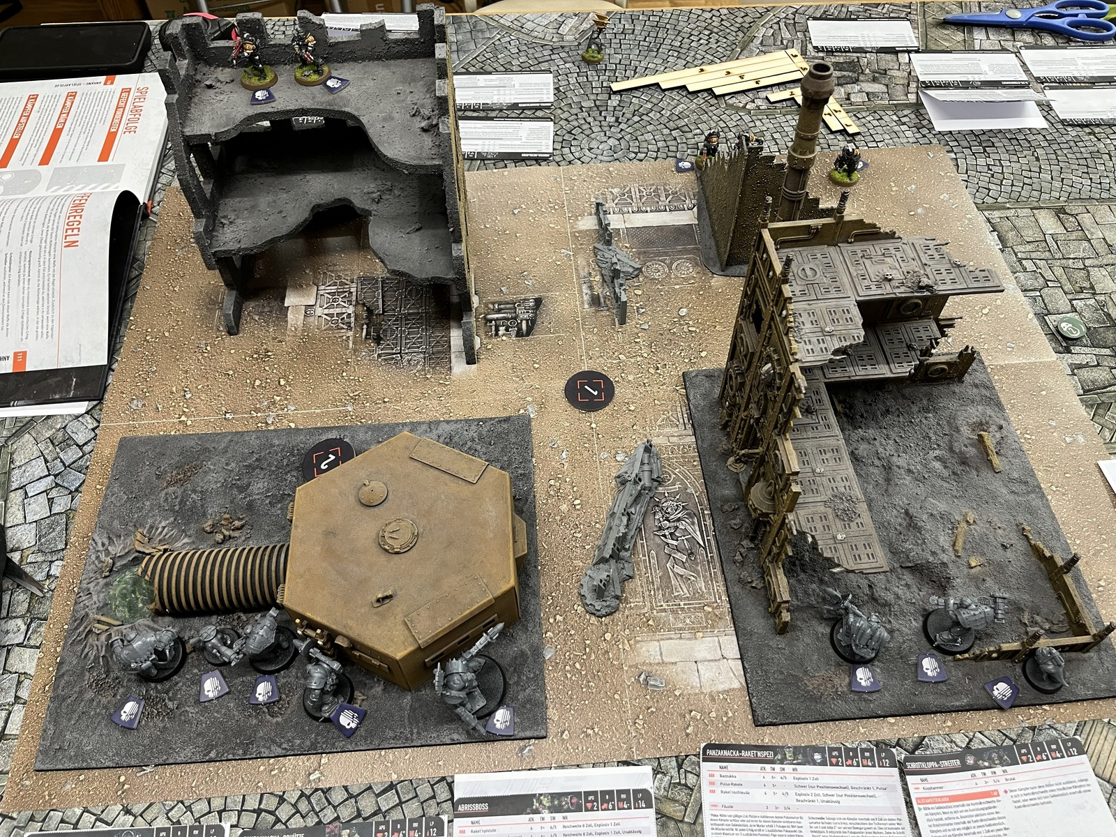 Meine Abrissbande ist ganz frisch aus der Packung und vor ein paar Tagen zusammengeklebt. Und es ging gegen Vollstrecker, die mein Freund schon länger hat, aber bei Killteam auch noch nicht so häufig eingesetzt hat. Diese Edition war für ihn auch fast neu, sodass wir den Abend genutzt haben, um die Regeln kennen zu lernen und dabei die Figuren mal ausprobiert haben. Hat echt Spaß gemacht. Am Ende gingen die Spielzüge auch schneller.