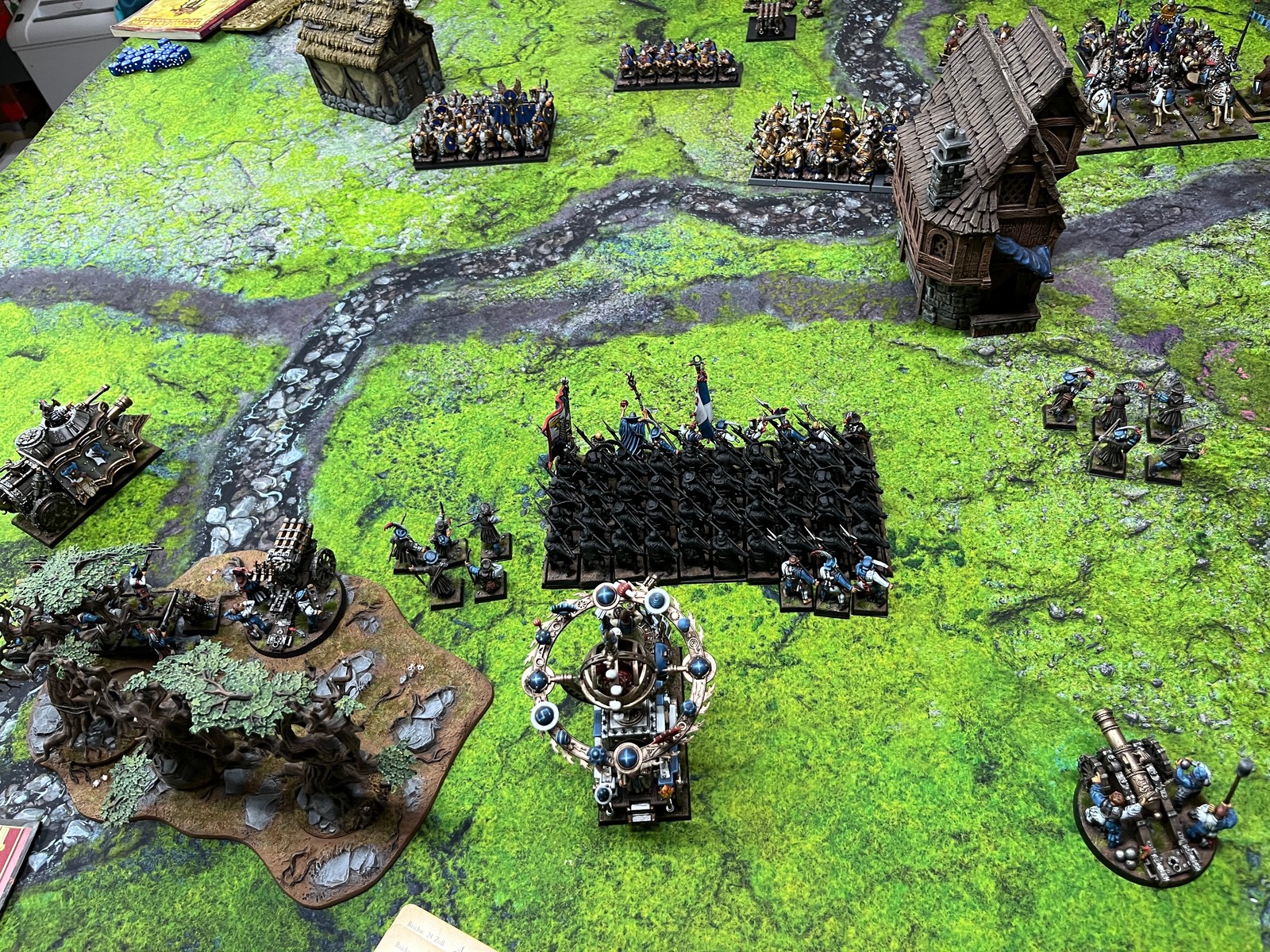 Beim Magier habe ich beim Kontrollverlust eine 4 gewürfelt mit den 2W6 und dann wird die große 5 Zoll Schablone auf den Zauberer gelegt. Jedes Modell bekommt einen Stärke 10 Treffer! Dazu wird für den Zauberer nochmal gewürfelt. Bei 1-3 ist er einfach tot und bei 4-6 darf er weiter leben... Vom Reich des Chaos steht da nichts... ich denke, da es ein Goblin ist, wird er nun bei Gork sein oder Mork? Oder beiden? ![]()