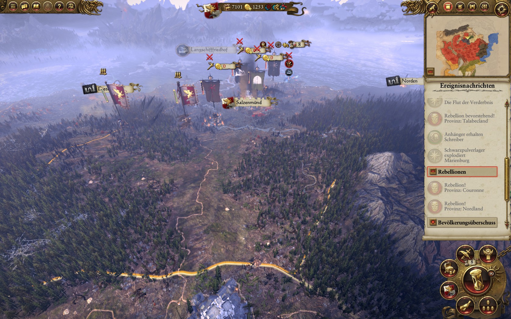 Scheinbar habe ich alle Horden des Chaos besiegt. Also nur noch die normalen Nordmänner sind übrig. Gut. Dann kann ich mich bisschen auf das Verbessern meines Imperiums konzentrieren.