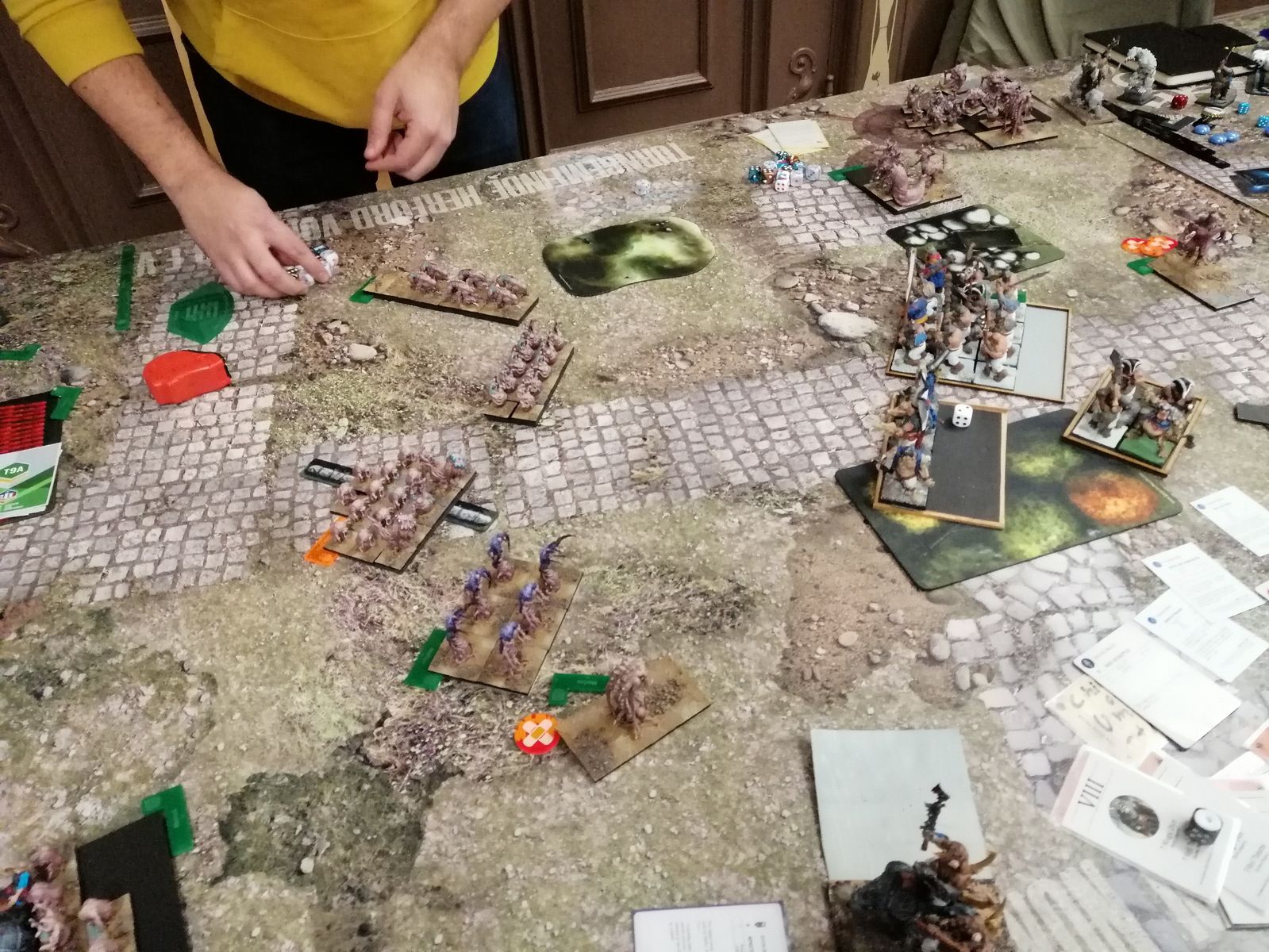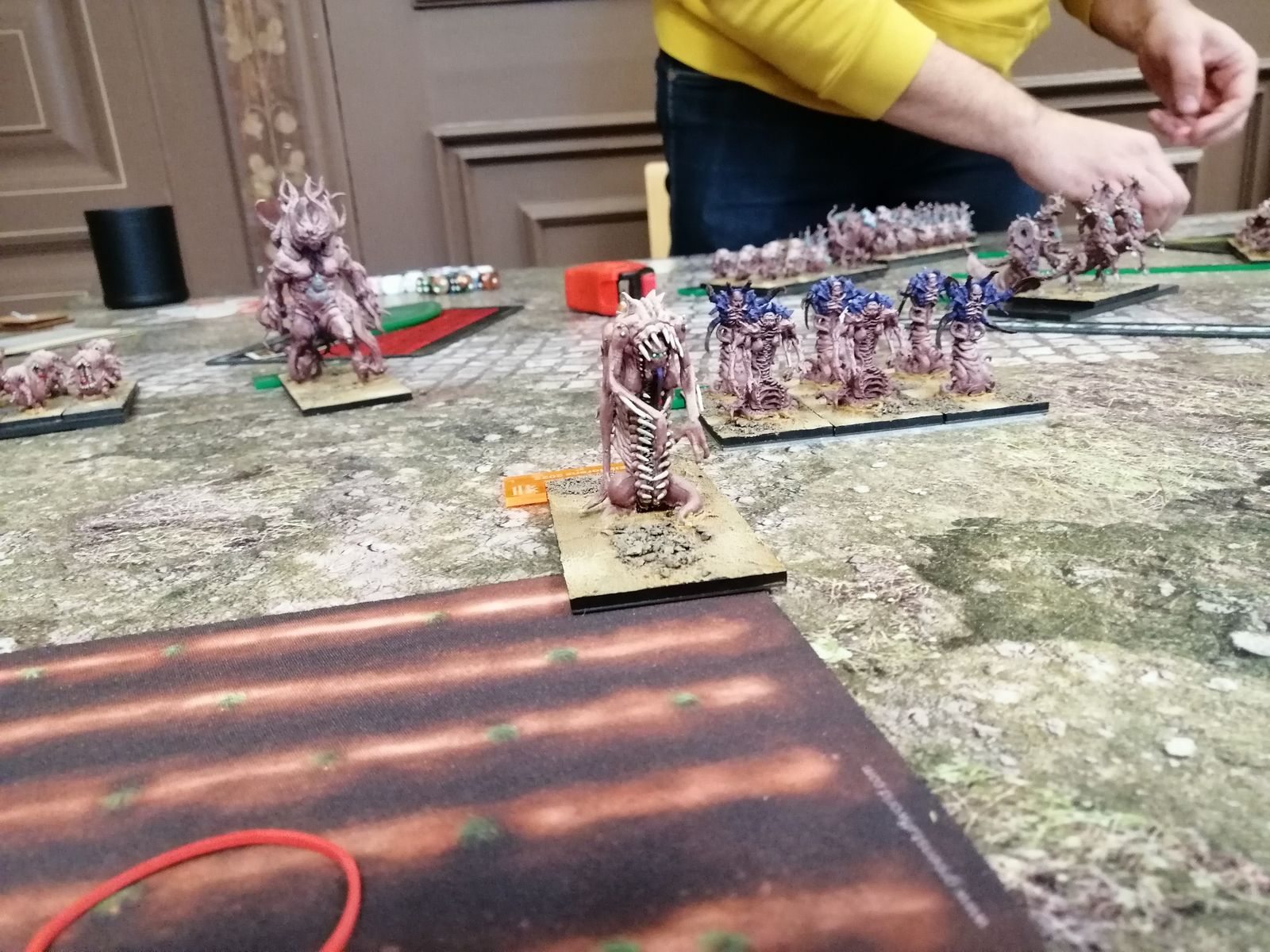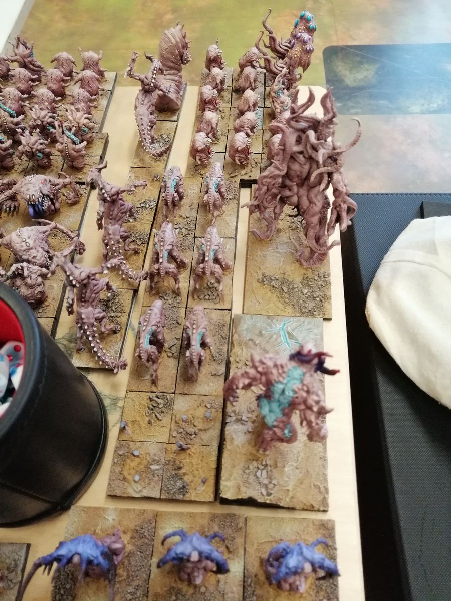 Der Reiter trifft auf die 2 und wundet auf die 3 mit 7 Attacken, das Reittier mit 4 A auf die 3+/3+ und lethal strike.