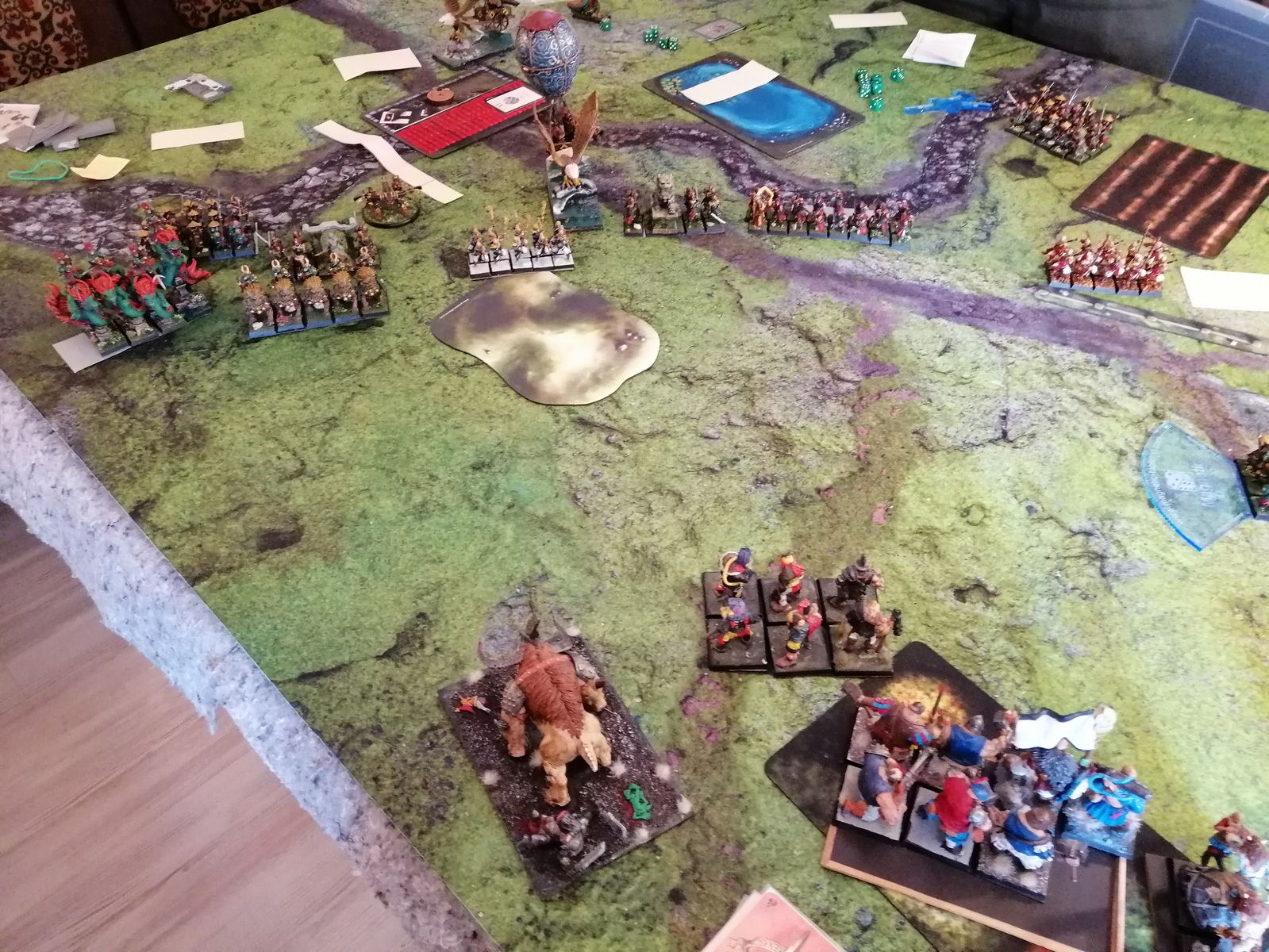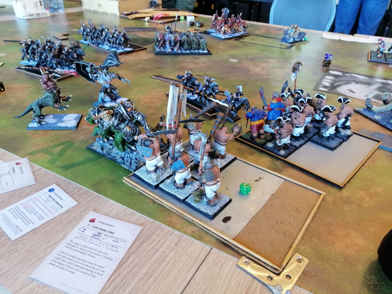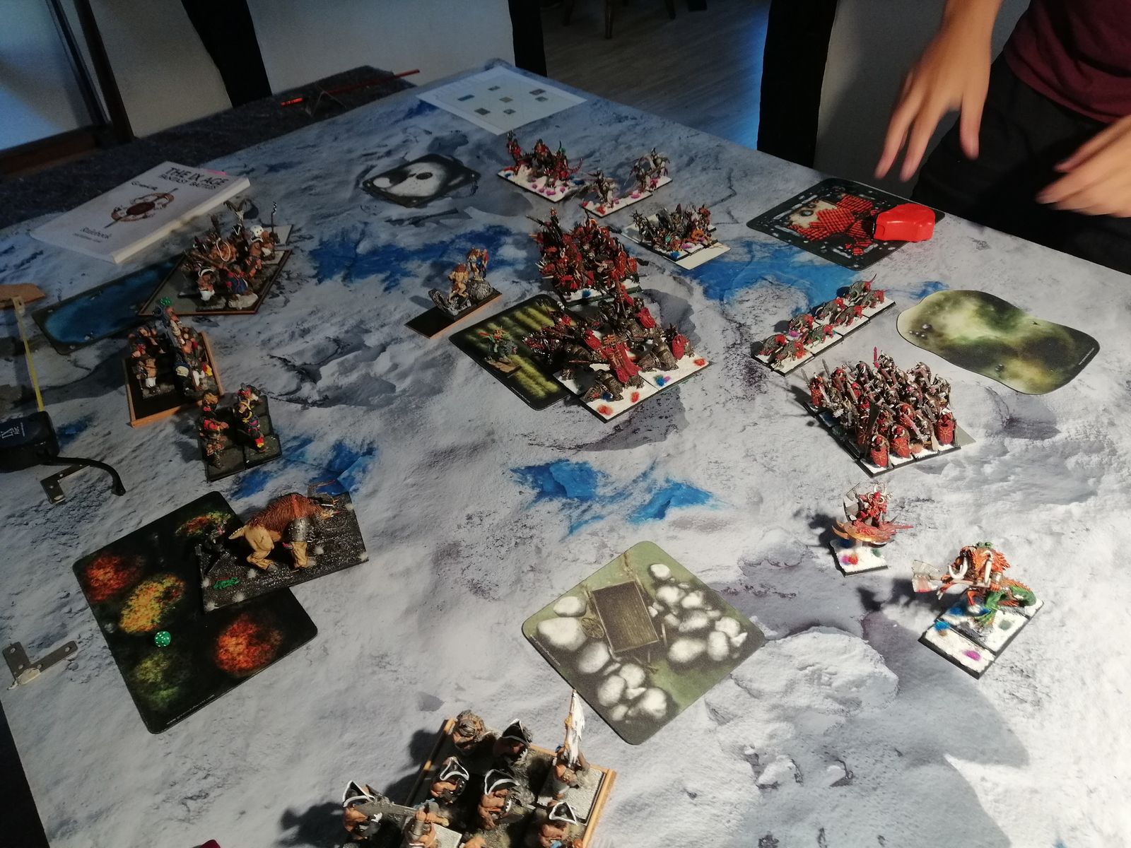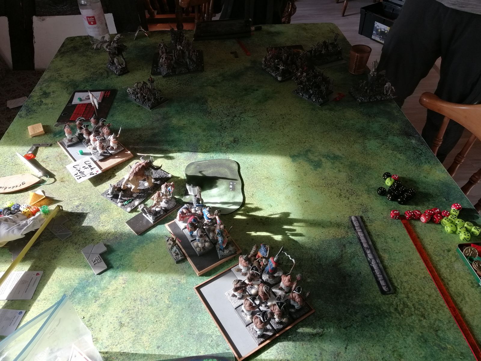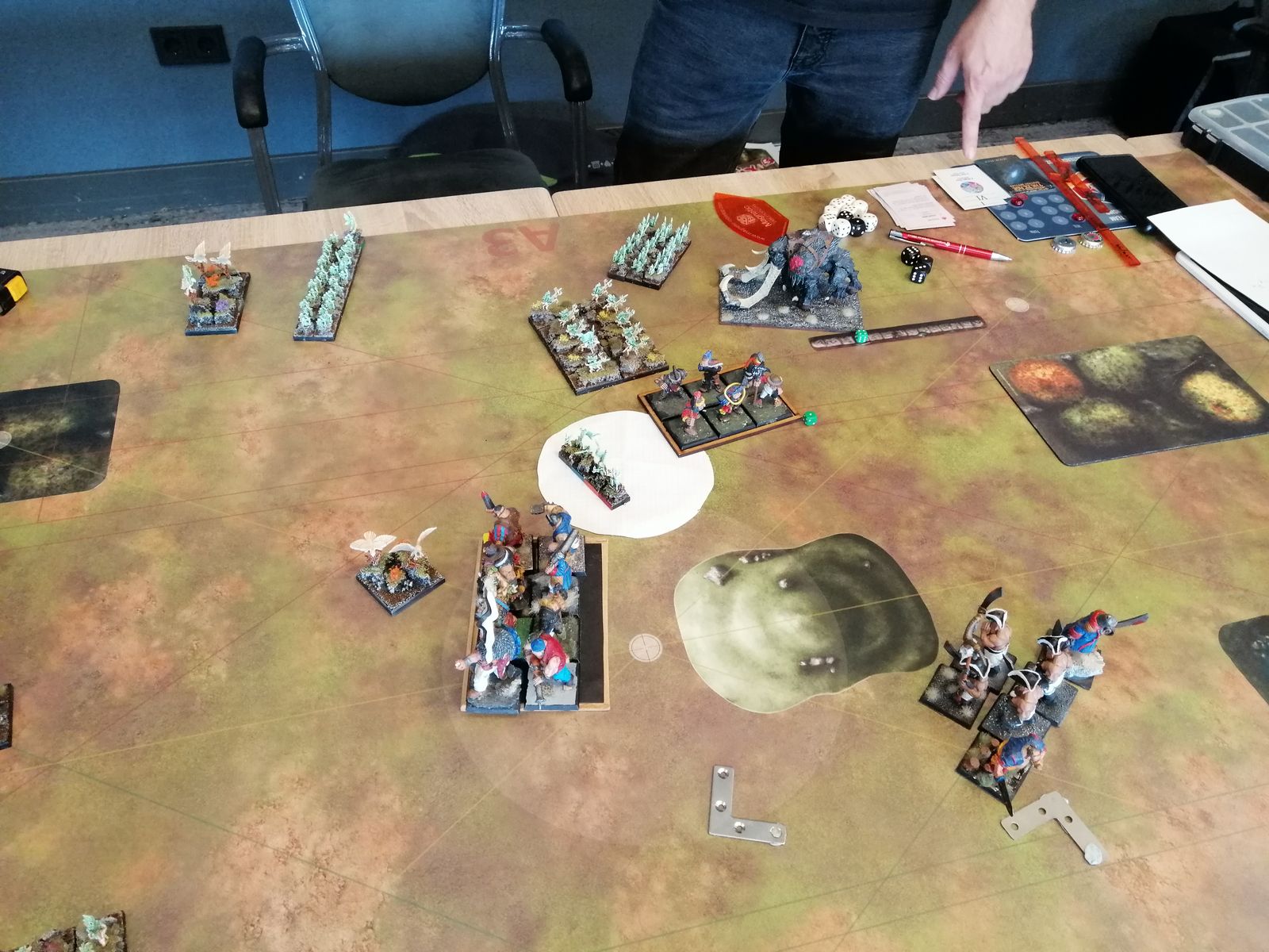 in Infanterie (Knights Forlorn) investiert hatte, der meine Oger überlegen sind und mein Gegenüber hatte auch noch nicht viel Erfahrung mit KOE(eher Zwerge und Echsen).