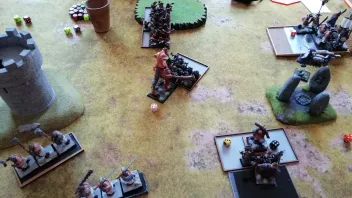 damit meine restlichen Truppen in der Spielfeldmitte mehr Zeit gewonnen haben im Grind gegen die Zwergenkrieger.